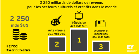 The study shows that the cultural and creative sectors represent 2,250 billion $US of revenue, exceeding the level of income of the telecommunications sectors. Visual arts in turn represent more than $ 391 billion.