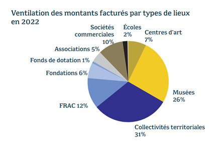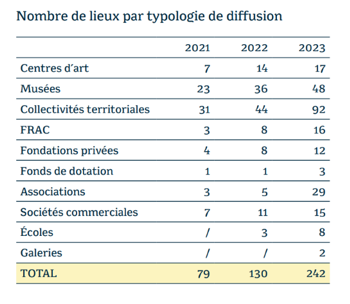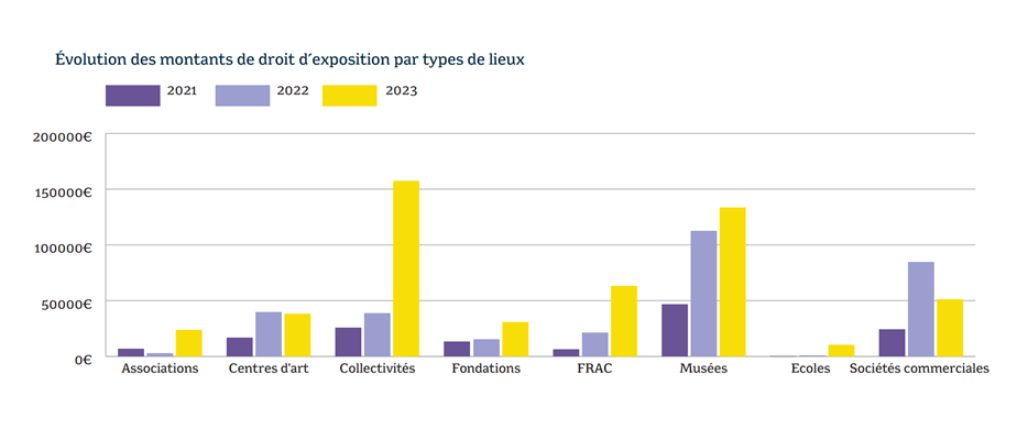 Faits marquants de cette édition 2024 : un nombre croissant de collectivités prend dorénavant en charge le droit d’exposition pour le compte de lieux de diffusion, ce qui explique la très forte progression de ce type de structure déclarante.